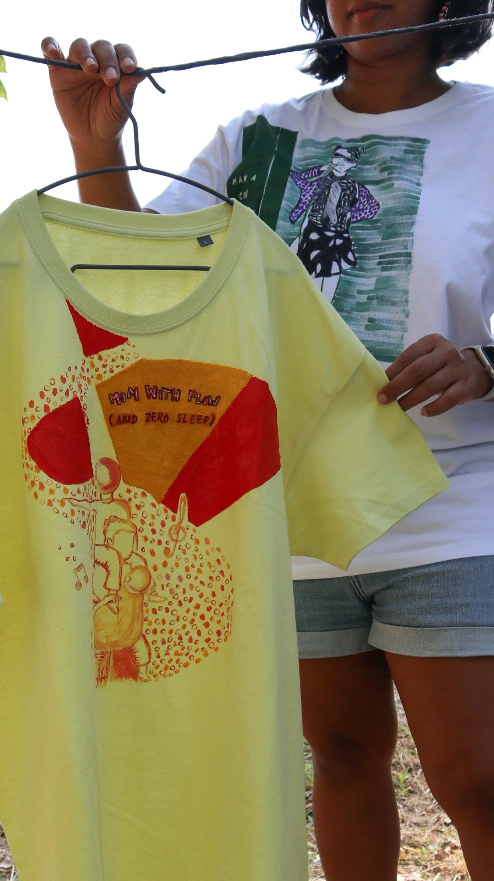 We celebrate motherhood's beauty and strength through our thoughtfully designed apparel. Each piece reflects a commitment to sustainability and the artistry of hand-painted organic cotton.